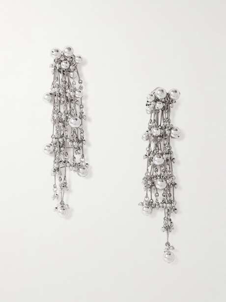 Isabel Marant's 'Freya' earrings are edgy and cool. Assembled from silver-tone beads and chains, they're designed to just graze the jawline.