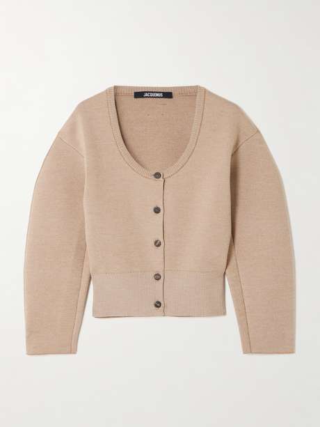 Slot Jacquemus' 'The Doppio' cardigan into your fall rotation for warmth and polished impact. It's made from thick wool-blend with a scooped neckline and has structured curved sleeves for volume. Note the J-shaped loop at the back.