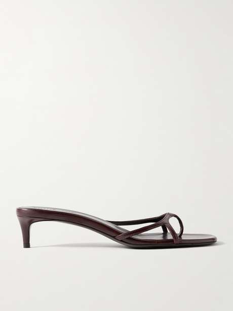 KHAITE's 'Mila' mules are reminiscent of minimalist '90s styles. Made in Italy from burgundy leather, they're set on manageable kitten heels and have foot-framing straps. Wear yours with everything from tailoring to dresses.