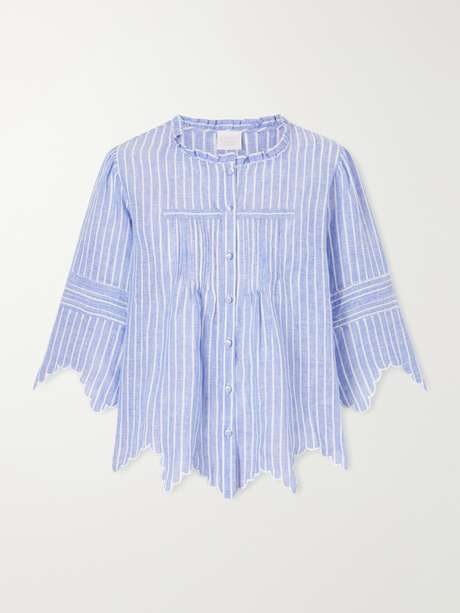LORETTA CAPONI Matilde scalloped striped linen shirt