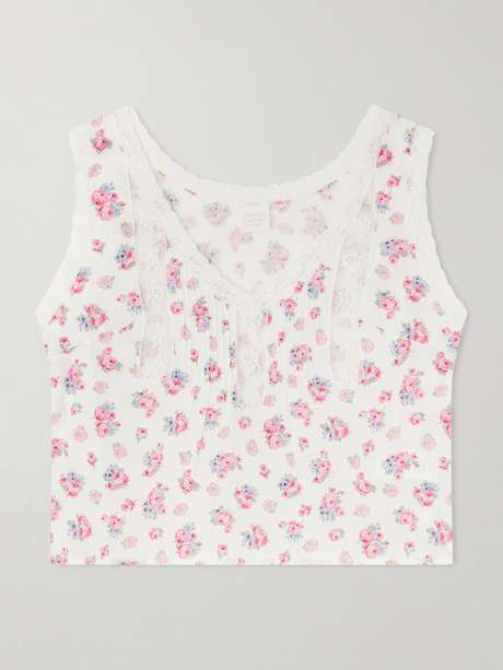 LORETTA CAPONI Simona floral-print lace-trimmed cotton top