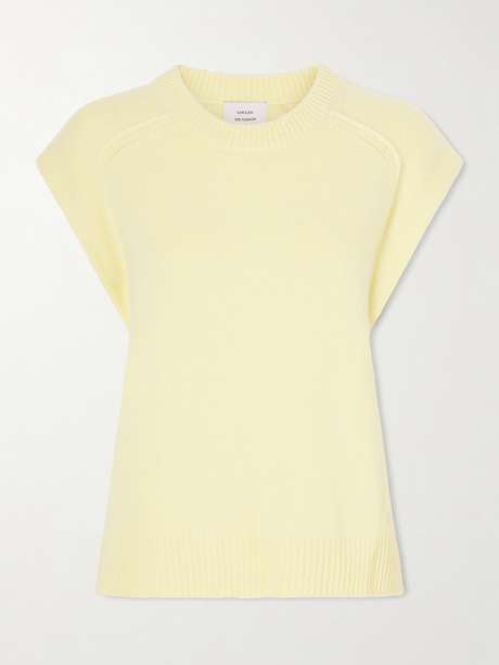 Loulou de Saison's collections are defined by exceptional fabrics and timeless designs. This 'Mari' vest is made from merino wool, specifically chosen for its softness, and sumptuous cashmere sourced from Inner Mongolia. It has a classic ribbed crew neckline and raised seams that define the shape.