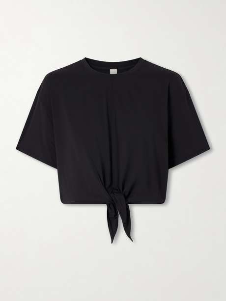 Lululemon's 'All Sport' T-shirt is made from soft jersey with a knotted front that creates gentle gathering. It has a relaxed, boxy fit and cropped length, with lightweight fabric that works equally well for casual days or gym wear.