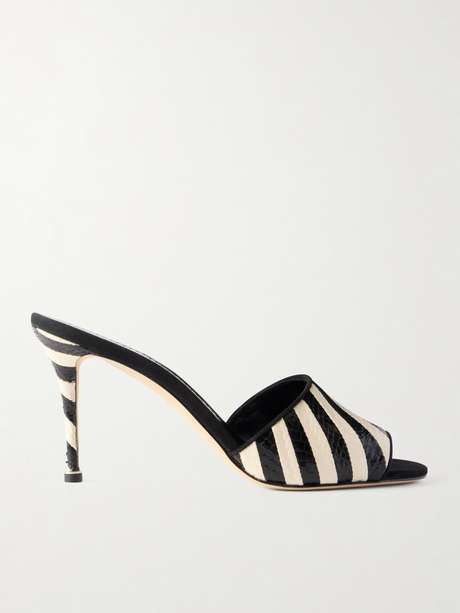 MANOLO BLAHNIK Larache 90 striped elaphe mules