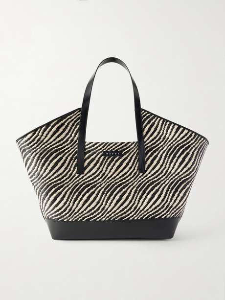 MARNI Waves leather-trimmed jacquard faux raffia tote
