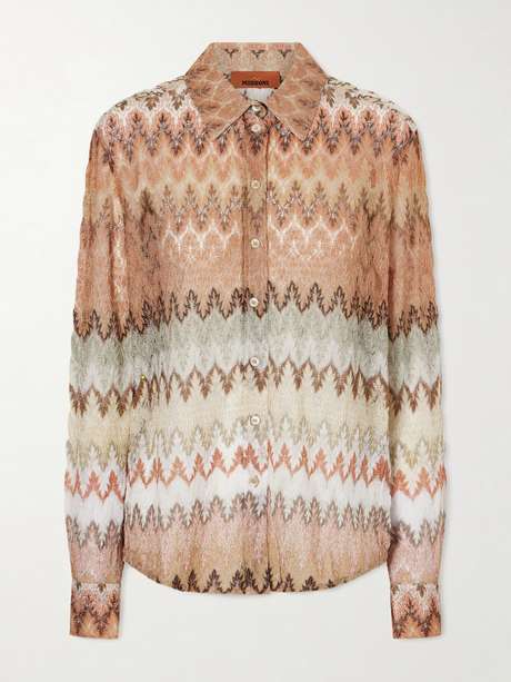 EXCLUSIVE AT NET-A-PORTER. Missoni’s shirt showcases the playful patterns and technical knit expertise the brand is known for. Made from crochet-knit, it features the iconic chevron design highlighted with metallic threads and has a relaxed fit. Its versatility makes it perfect with casual or tailored pants, transitioning effortlessly from day to night.