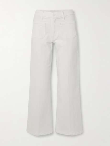 MOTHER's '70s-inspired collections embody the spirit of California cool. These 'Patch Pocket Maven Ankle' jeans are made from white denim with retro-inspired patch pockets and sharp creases along the straight legs.
