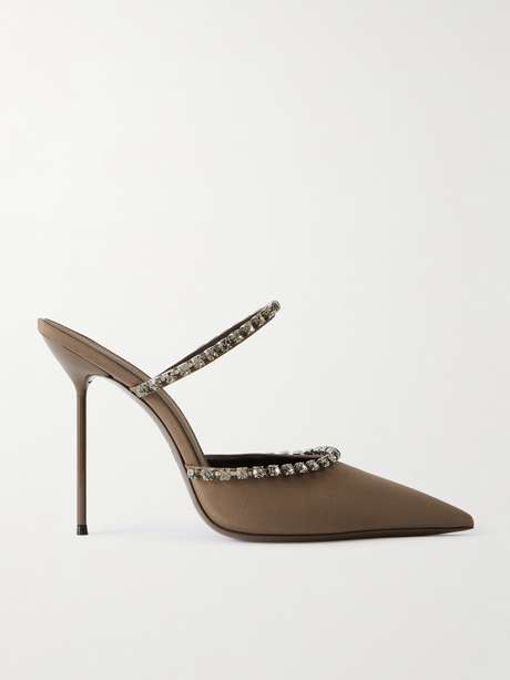 EXCLUSIVE AT NET-A-PORTER. This version of Paris Texas' popular 'Lidia' pumps takes cues from mules and Mary Janes. Made from crepe, they're detailed with two rows of crystals and have pointed toes and 105mm stiletto heels.