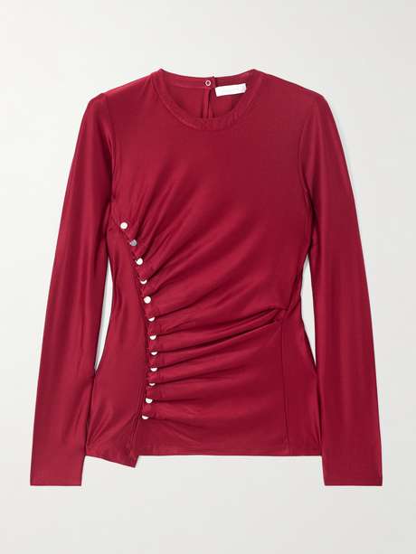 EXCLUSIVE AT NET-A-PORTER. Rabanne's top is adorned with silver-tone snap fastenings through the front - the signature detail can be adjusted, allowing you to reveal more or less skin. It's made from jersey that's gathered for subtle texture.