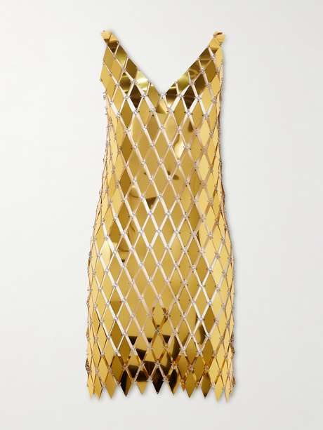 EXCLUSIVE AT NET-A-PORTER. Rabanne's 'Assemblage' dress is such a cool choice for parties. Made from diamond-shaped chainmail, it has a V-neckline and jagged mini hem. Style yours with a clutch and heeled sandals.