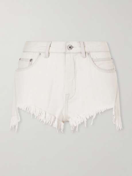 Rick Owens’ shorts reflect the label’s signature subversive approach. Made from white denim, they’re cut shorter at the front for a deconstructed silhouette, emphasized by heavily frayed hems.