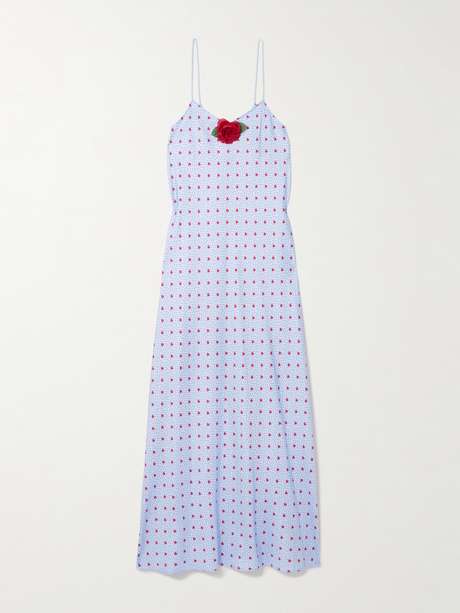 RODARTE Appliquéd printed silk-twill midi dress