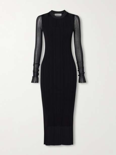 SPORTMAX Layered plissé-tulle and ribbed-knit midi dress