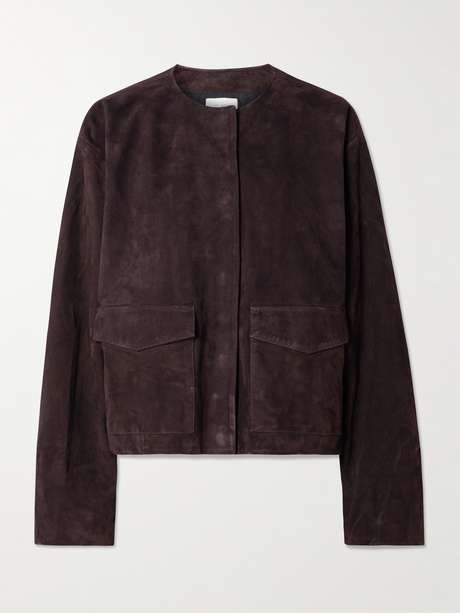 ST. AGNI favors simplicity, making every design more wearable, long-lasting and intrinsically chic. This jacket is made from soft, fine suede in a utility-inspired silhouette. Lean into the slightly loose fit with wide-leg pants.
