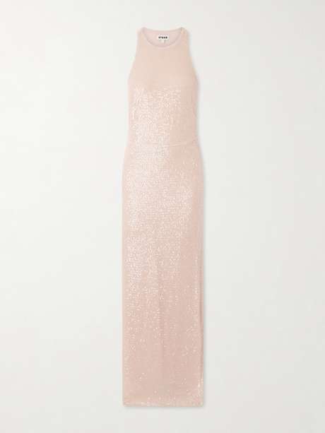 STAUD Bree sequined tulle halterneck midi dress