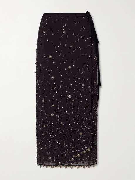 STAUD Mer embellished chiffon midi wrap skirt