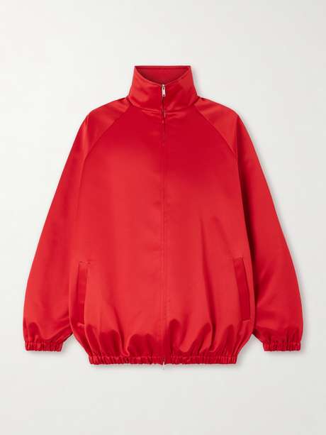 The Frankie Shop's 'Baxter' jacket is an elevated take on sporty track styles. It's made from midweight satin for a loose fit with dropped shoulders and an exaggerated stand collar.