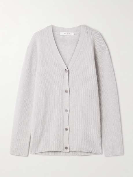 The Row's ribbed 'Maser' cardigan is a cozy layering piece for chilly days. It's knitted from warm cashmere and can be styled fully buttoned or open, depending on your mood.