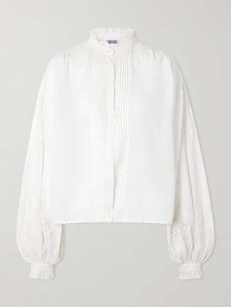 Thierry Colson's 'Slava' shirt has a sense of whimsy with its billowy sleeves. It's expertly made from cotton-voile that's ruched, pleated and hand-embroidered with wild flowers.