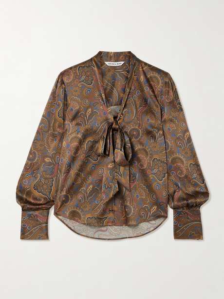 VERONICA BEARD Francine paisley-print stretch silk-blend satin pussy-bow blouse