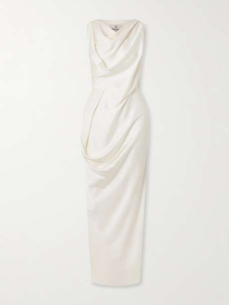 There's a beautiful sense of movement to Vivienne Westwood's 'Long Fond' dress, yet it feels sculptural at the same time. Made from crinkled-satin, it gathers at the waist and drapes with the designer's signature sense of asymmetry.