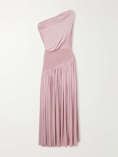 ABADIA Gwen asymmetric draped jersey-trimmed stretch-bamboo maxi dress