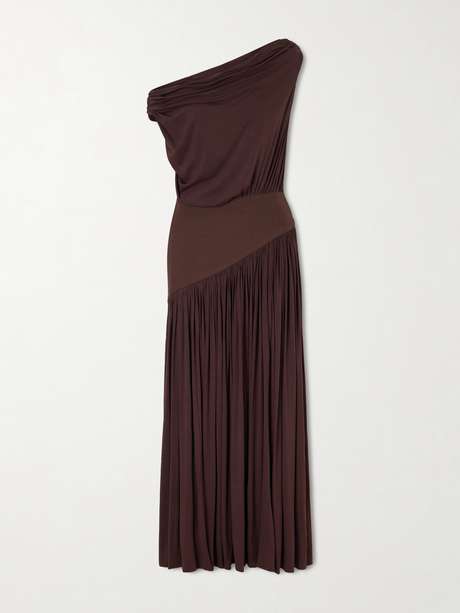 EXCLUSIVE AT NET-A-PORTER. Abadia's 'Gwen' dress is cut from exceptionally soft stretch-bamboo. It has an elegant one-shoulder asymmetric shape and is artfully draped across the top and through the flowing skirt.