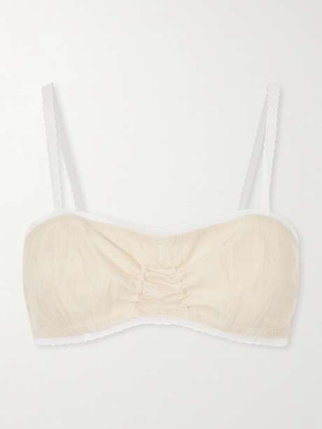 Colleen Allen’s bralette is crafted from blush tulle with lace trim along the edges. It's slightly gathered at the center, creating a subtle three-dimensional effect.