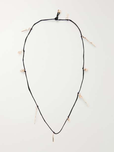 For Spring Summer ’26, Gabriela Hearst continues the narrative unfolding across its recent collections, drawing on the symbolism of the Tarot de Marseille. Inspired by the guiding spirit of the L’Hermite IX card, this cord necklace is strung with 18-karat gold charms representing the elemental suits.