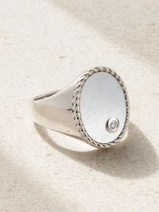 YVONNE LÉONChevalière Ovale 9-karat white gold, mother-of-pearl and diamond signet ring