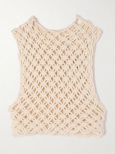 Cropped open-knit cotton-blend tank