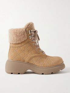 Yaga fleece-trimmed logo-debossed suede ankle boots