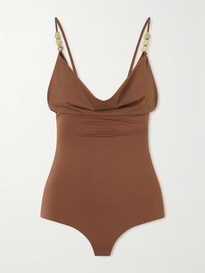 Embellished cowl-neck swimsuit