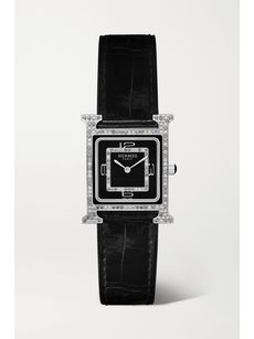 HERMÈS TIMEPIECESHeure H Bijoux de Soir 21mm 18-karat white gold, alligator, diamond and spinel watch