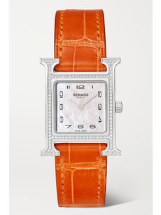 HERMÈS TIMEPIECESHeure H 21mm small stainless steel, alligator, diamond and mother-of-pearl watch