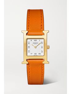HERMÈS TIMEPIECESHeure H 21mm small gold-plated and leather watch