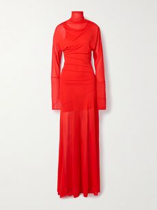 With her sophomore collection for Carven, Louise Trotter did exactly this, serving modern riffs on column and hourglass silhouettes from Madame Carven’s 1940s archive. Among the best was a black taffeta midi skirt, paired with leather gloves and kitten-heel slingbacks, and with an off-kilter twist with a loose-fit white blouse that had a back-to-front feel. At Victoria Beckham, sporty zip-front, ski-inspired turtlenecks were tucked into tweed midi skirts; and, for his fourth outing at Ferragamo, Maximilian Davis looked to the 1920s, serving elegantly fringed slip dresses and a dazzling boat-neck floor-length satin gown – which was reminiscent of the divine green dress Keira Knightley wore in Atonement, but in a sleek black.