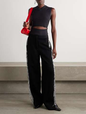 Our collection of women's designer pants includes a range of styles from the top fashion labels that flatter all figures. From smart designer pants in wool-blend and twill to more casual designer leggings and track pants, our designer pants can be worn with anything from T-shirts to blouses.