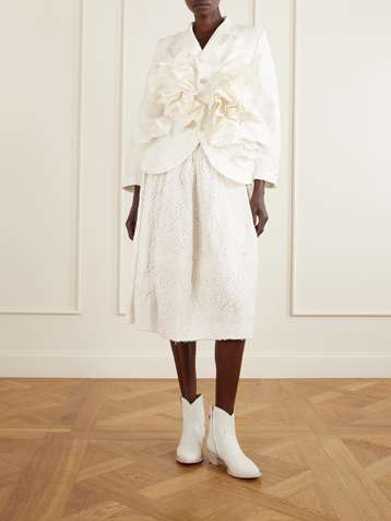 The designer skirts in our collection are versatile enough to create multiple looks, whether it's a distressed denim mini skirt from GUCCI, or a showstopping sequined midi skirt from Khaite. Pair your skirt with a cotton tee for a casual vibe, or a silk blouse for a formal look. Explore the range today to find the perfect skirt for you.