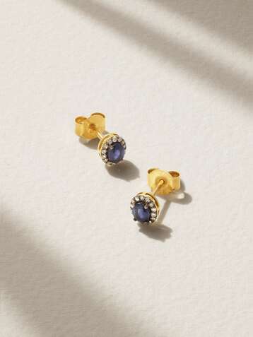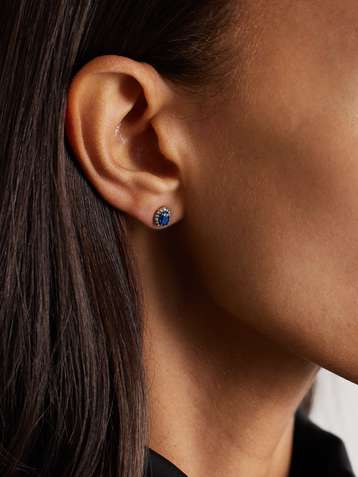 Rajasthan mini rhodium-plated 18-karat gold, sapphire and diamond earrings