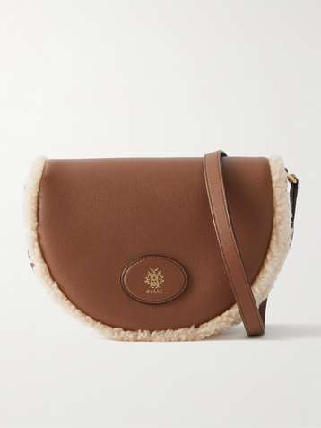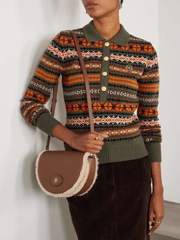 Quilted webbing and leather-trimmed wool-bouclé shoulder bag