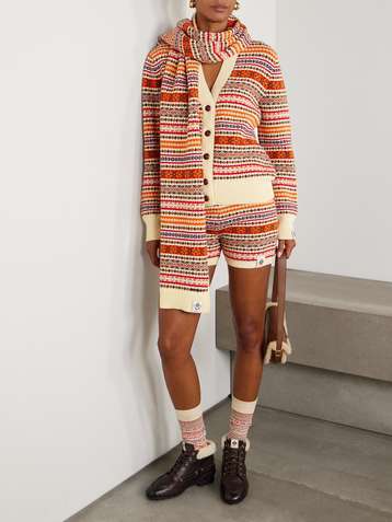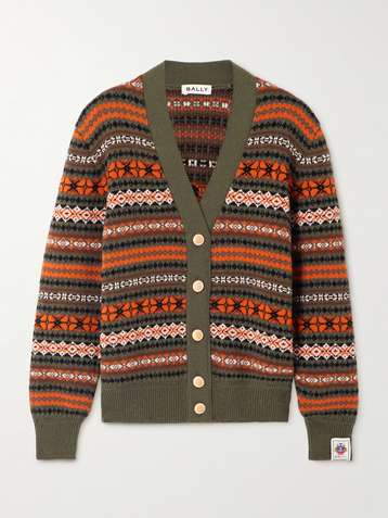 Mountain merino wool and cotton-blend jacquard-knit cardigan