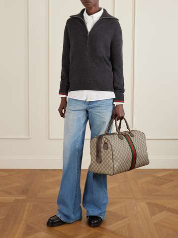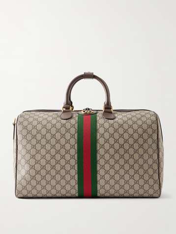 Ophidia leather-trimmed printed coated-canvas weekend bag