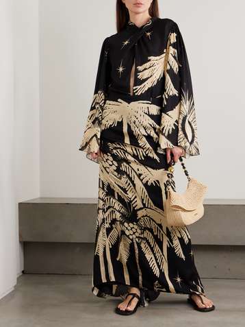 + NET SUSTAIN River Classing cutout printed satin-jacquard maxi dress