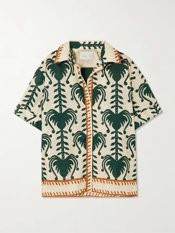 Hacia Puerto tie-neck printed recycled-twill shirt