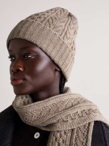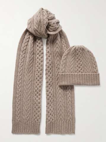 Cable-knit cashmere beanie and scarf set