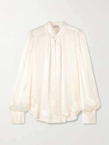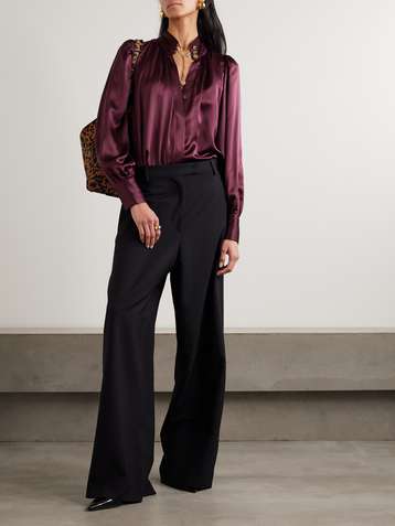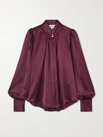 Majorelle tie-detailed ruffled floral-print silk crepe de chine blouse