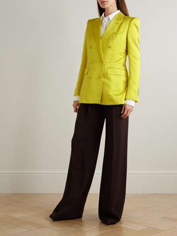 Double-breasted cotton and silk-blend hammered-satin blazer