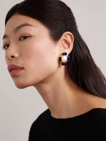 Chanel gold-plated, Gripoix crystal and faux pearl clip earrings
