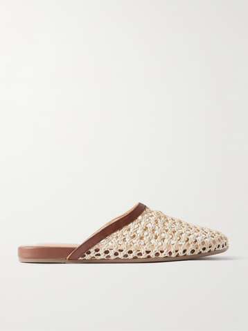 The Slipper leather-trimmed raffia mules